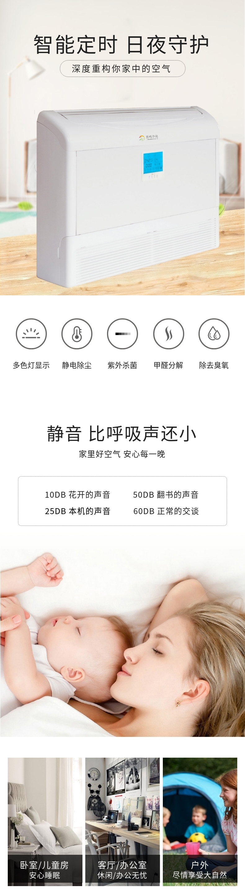 除花粉,除甲醛,除煙除塵,殺菌,除臭氧